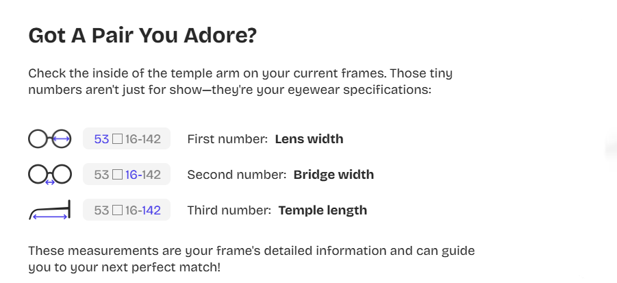 You can choose the right eyewear for you by measuring your existing frame size or using the guideline on our website: Here's How to Frame Your Face!
